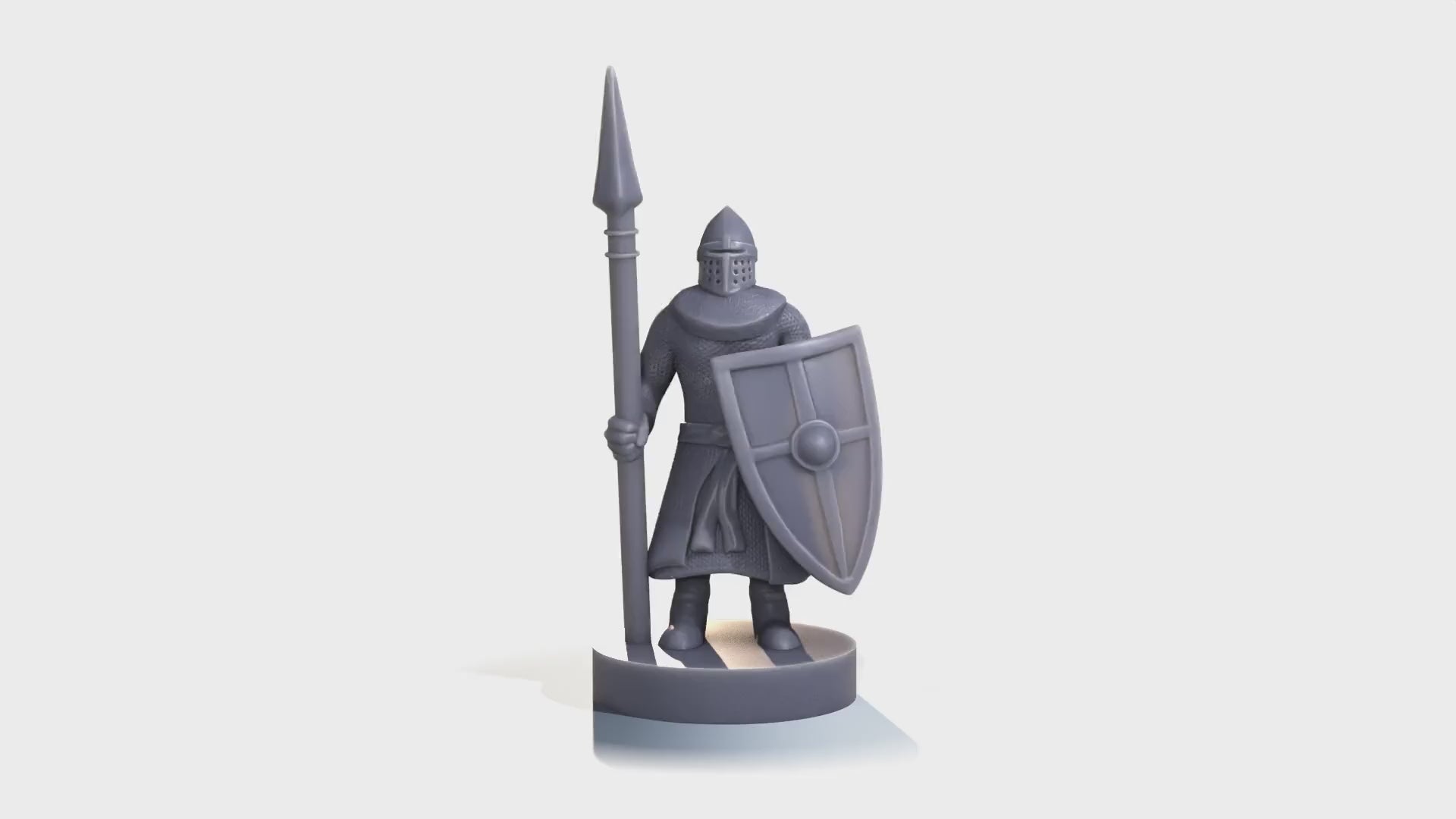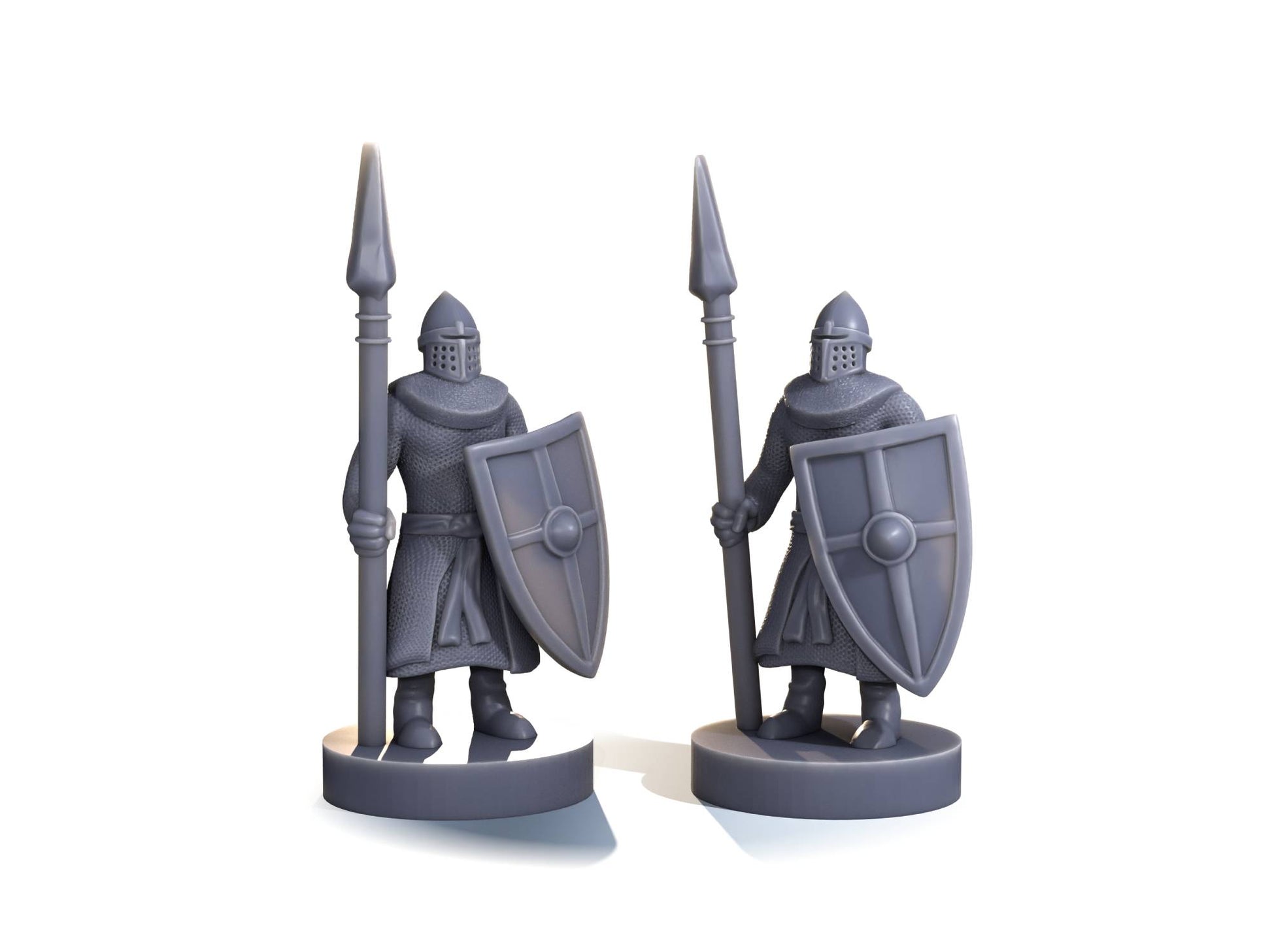 Medieval Spearman – A sturdy board game piece depicting a fully armored soldier clad in chainmail and a conical helmet. He stands ready with a tall spear in one hand and a large kite-shaped shield in the other, perfect for holding the line or defending key positions on the battlefield.